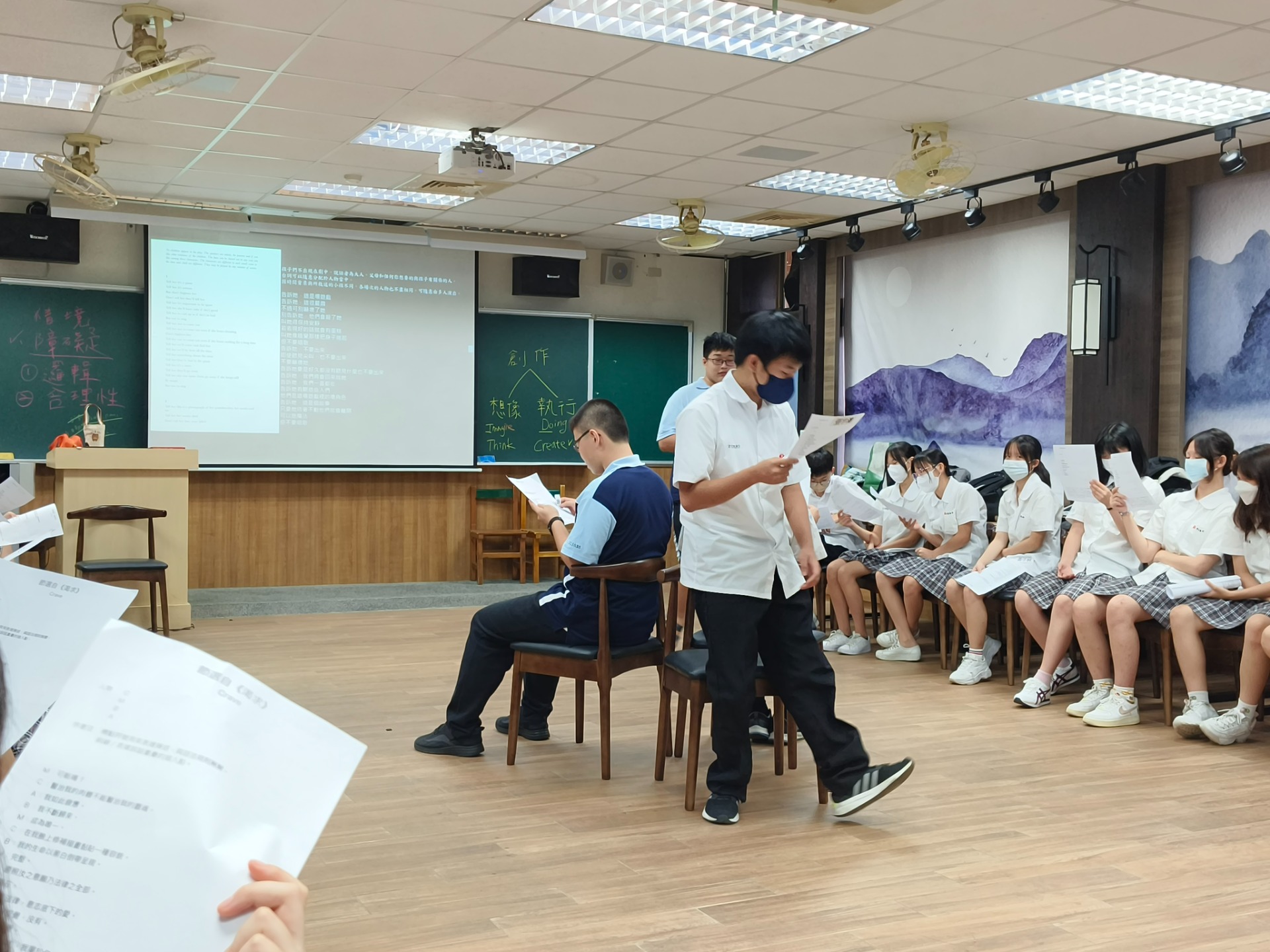 在完成劇本後,我們到視聽教室以分小組的方式將每個人的劇本都演出在舞台上,讓大家看到同學們的創意,也對戲劇有更完整的認識。