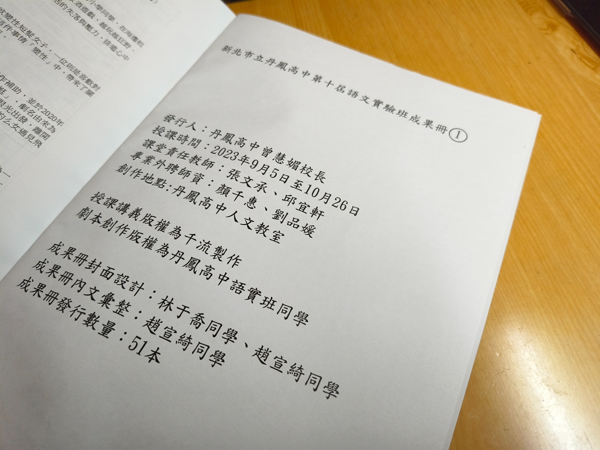 這次的劇本創作我們還集合成冊,製作出第一本自己班上的成果冊,封面與封底也由班上同學合作設計完成,過程中或許有些不順利,但在努力的堆疊之下,還是做出了不錯的成品。